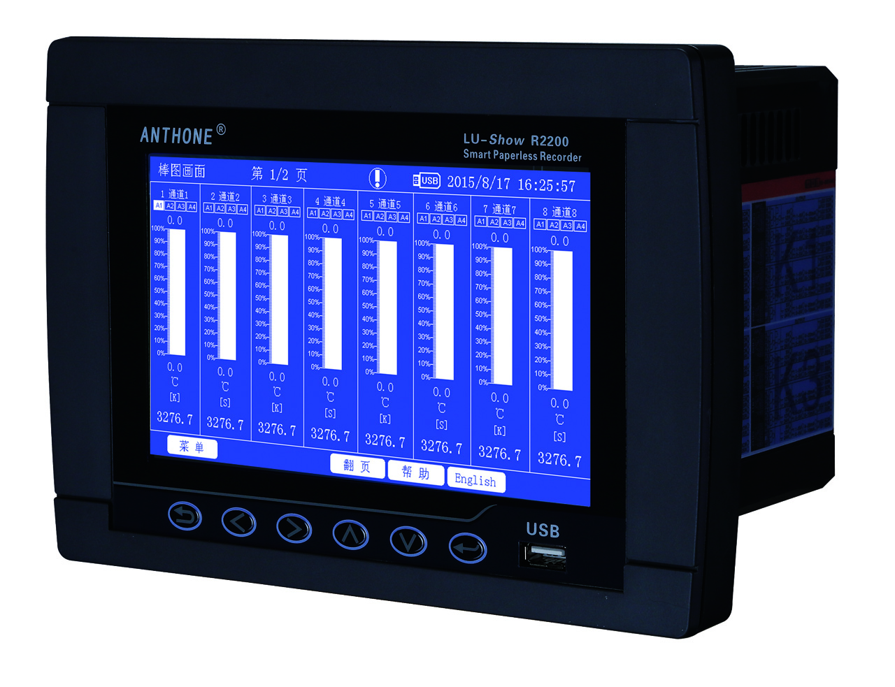 安東電子最新一代無紙記錄儀 LU-Show R/C2200 R/C3200智能觸摸屏無紙記錄儀,具有開機視頻秀、開機圖片秀、工藝流程秀、“幫助”秀、滑屏動感操作、截屏打印、板卡式模塊化結(jié)構(gòu)、模糊PID控制、可編程報警輸出、最高等級抗群脈沖干擾、通道擴展功能等優(yōu)點。
