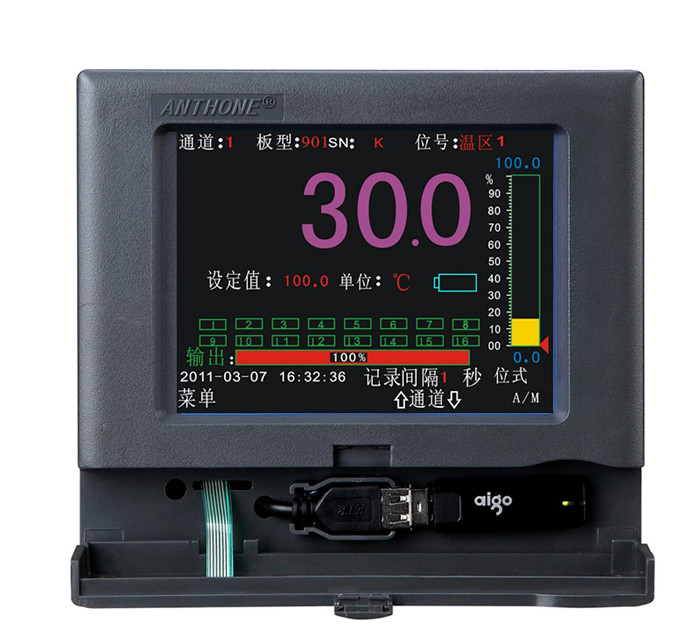 LU-C3000系列彩色液晶顯示過程控制無紙記錄儀,可以為一至八通道可編程PID控制,程序控制曲線多可達一百段的無紙記錄儀。儀表輸入為全切換萬能輸入,可輸入熱電偶、熱電阻、標準電流等信號,可提供饋電輸出。直接連接微型打印機、彩色噴墨打印機,可同時打印多條曲線,可打印用戶指定時間的實時歷史數據及曲線;通過RS232通訊接口與便攜計算機、掌上電腦(PDA)連接,直接讀取儀表歷史數據,再傳給計算機,通過數據管理軟件,可對所取數據進行分析、存檔、打印、處理。通過RS485通訊接口,可與組態(tài)王、MCGS等專業(yè)組態(tài)軟件組成實時監(jiān)控系統(tǒng)。并采用現代USB接口技術,直接將數據存儲于U盤,記錄時間更長。