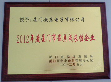 喜訊:廈門安東電子榮獲2012年度廈門市最具成長性中小企業(yè)