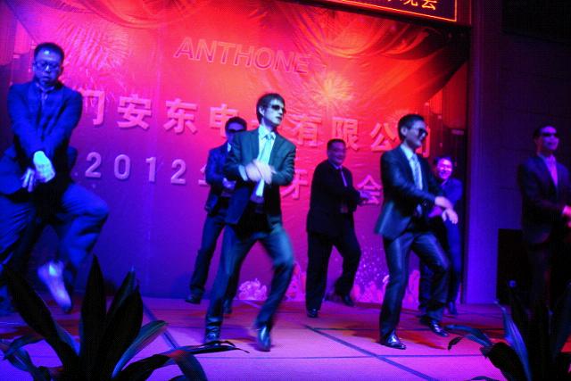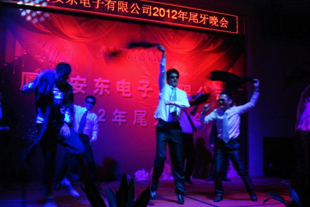 每年的尾牙晚會(huì)都是安東同仁期待的盛會(huì),我們?cè)谶@個(gè)舞臺(tái)慶祝收獲,歡歌笑語;我們這這里展示才藝,妙舞輕歌;我們這這里釋放激情,同慶付出;我們這這里共敘緣分,滿懷感恩!晚會(huì)上的每個(gè)節(jié)目都有鮮明的特色,活力動(dòng)感的現(xiàn)代舞《roly poly》,在黑暗中絢麗多姿的熒光舞《夜光魅影》,婀娜多姿、舞姿飄逸有田園風(fēng)格的《茶山情歌》,霸氣十足的帥氣《安東style》。語言類節(jié)目也難得的好評(píng)如潮,《超幸福鞋墊》讓你覺得仿佛坐在電視機(jī)前聽購(gòu)物頻道主持人如數(shù)家珍,又似乎看著央視春晚的搞笑小品。還有源于生活、體現(xiàn)百態(tài)的自創(chuàng)小品《賣切糕》,一氣呵成的創(chuàng)作編排,不斷拋出的笑點(diǎn),專業(yè)的角色演出都成就了經(jīng)典... 不論是朝氣蓬勃還是成熟穩(wěn)重,所有的同事都英姿颯爽,在舞臺(tái)上表現(xiàn)得酣暢淋漓。